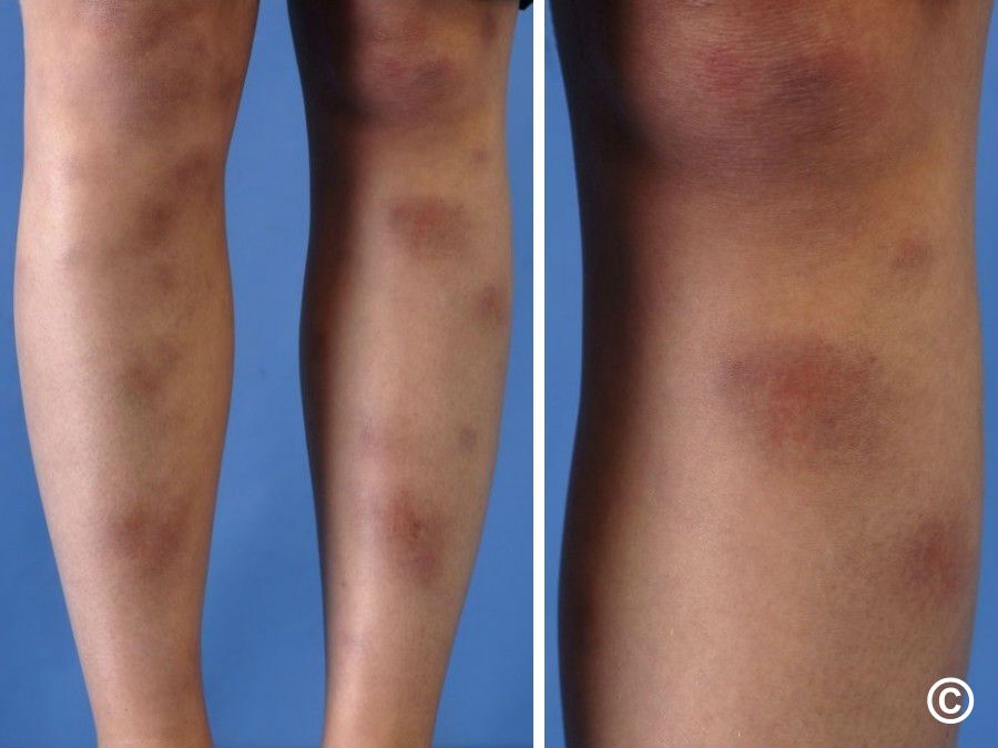 • Phân bổ đối xứng ở cẳng chân, mắt cá chân và đầu gối.