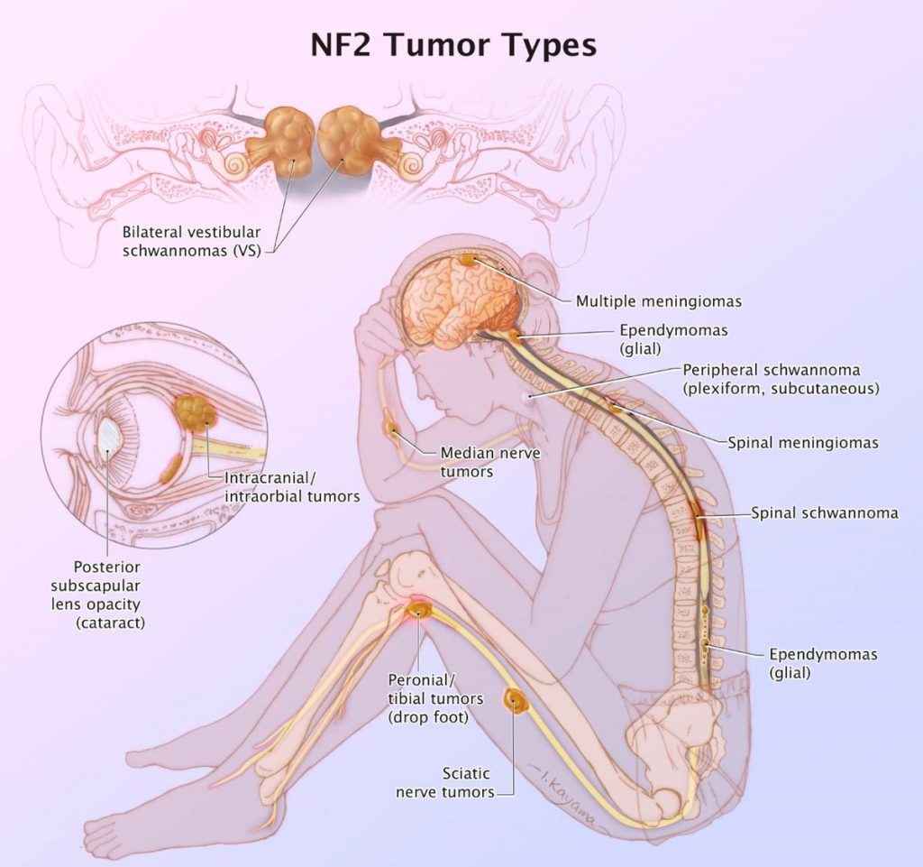 Neurofibromatosis type 2 (NF2) is a rare condition inherited as an autosomal dominant