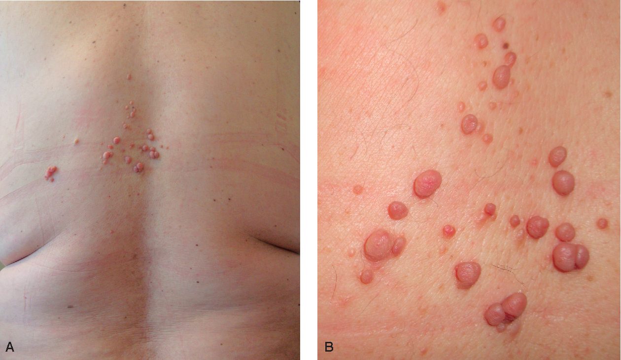 plaques with a rough surface (may be pigmented or hypertrichotic) or subcutaneous